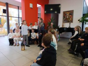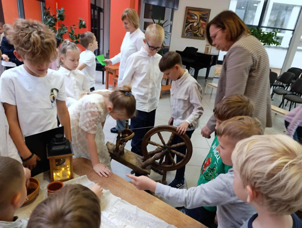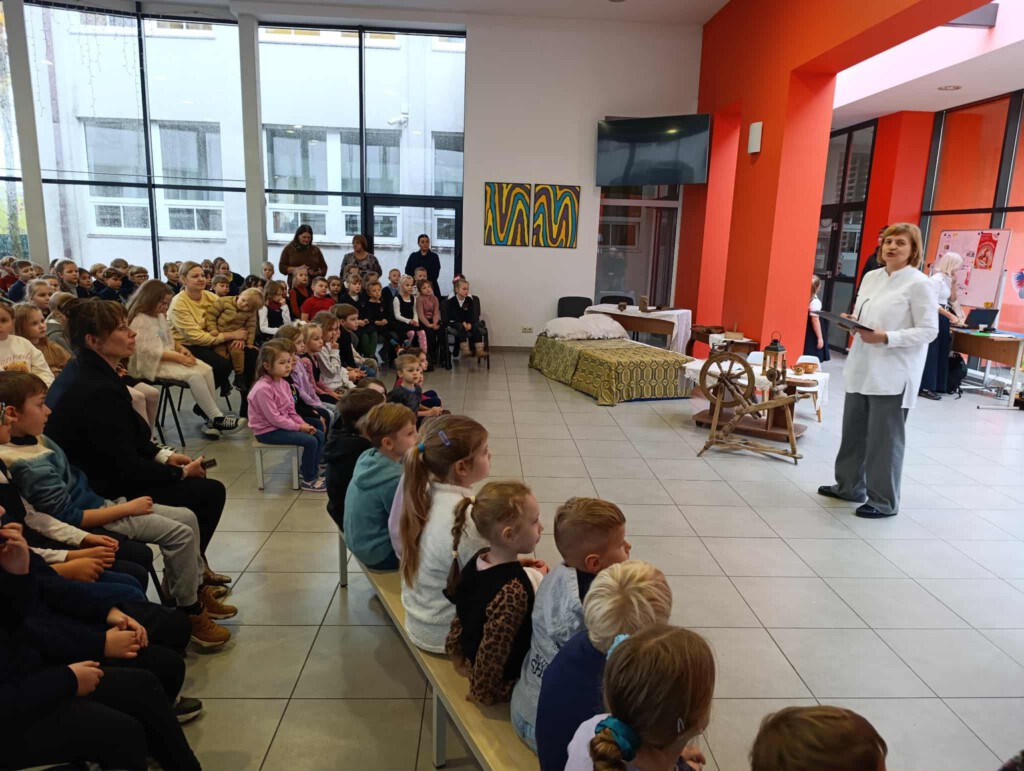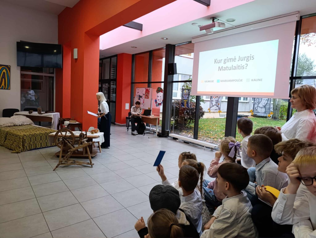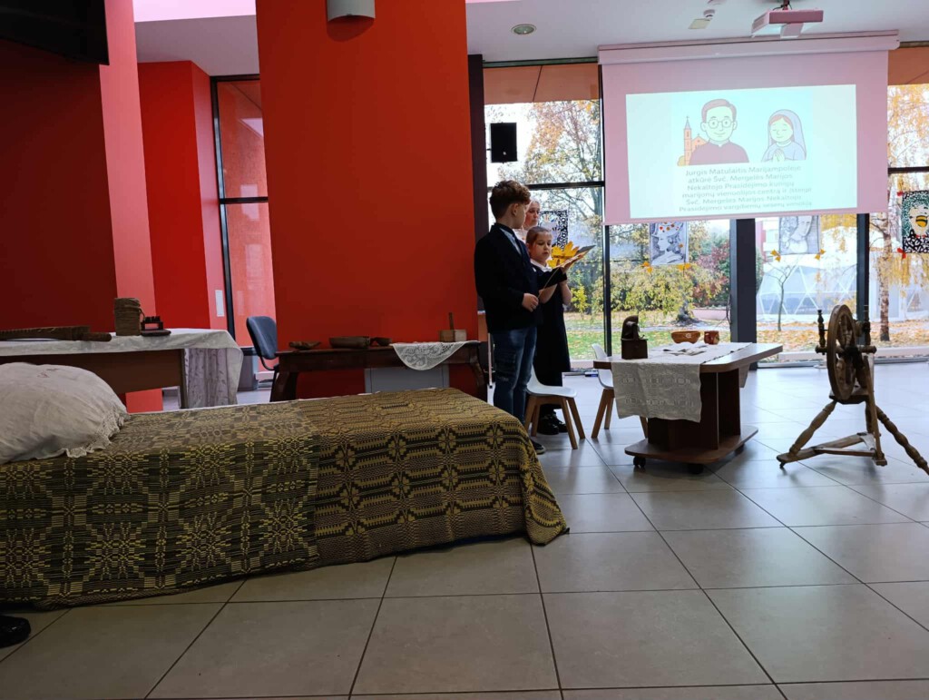 Pamokos metu buvo suvaidinta inscenizacija, kuri nukėlė į IXX a. pabaigą, į to laiko kaimo žmonių buitį, mokyklą. Žodžiai iš mažų vaikų lūpų prašė sekti palaimintojo Jurgio Matulaičio pavyzdžiu. Skambėjo muzikos mokytojų Loretos ir Jolitos išmokyta lietuvių liaudies daina, giesmė. Tikybos mokytoja Eglė mokinius “egzaminavo viktorinoje. Klausimų atsakymai jau 2 mėnesius buvo girdėti tikybos pamokose, palaimintojo Jurgio Matulaičio muziejaus edukacijose, dailės pamokoje, kai mažieji dailininkai piešė piešinius konkursui, skirtam pasiruošti palaimintojo Jurgio Matulaičio 100 -osioms mirimo metinėms. Todėl atsakinėti į klausimus sekėsi puikiai.
