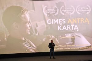 Mokiniai žiūrėjo režisierės Deboros Matonienės trumpametražį filmą „Gimęs antrą kartą“ ir po peržiūros diskutavo su filmo herojumi Vladislavu Pociumi apie priklausomybių žalą jaunam žmogui bei apie asmeninę atsakomybės ir pasirinkimo svarbą.