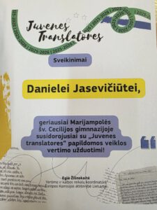 Geriausiai mūsų gimnazijoje su vertimu susitvarkė Danielė Jasevičiūtė!!!