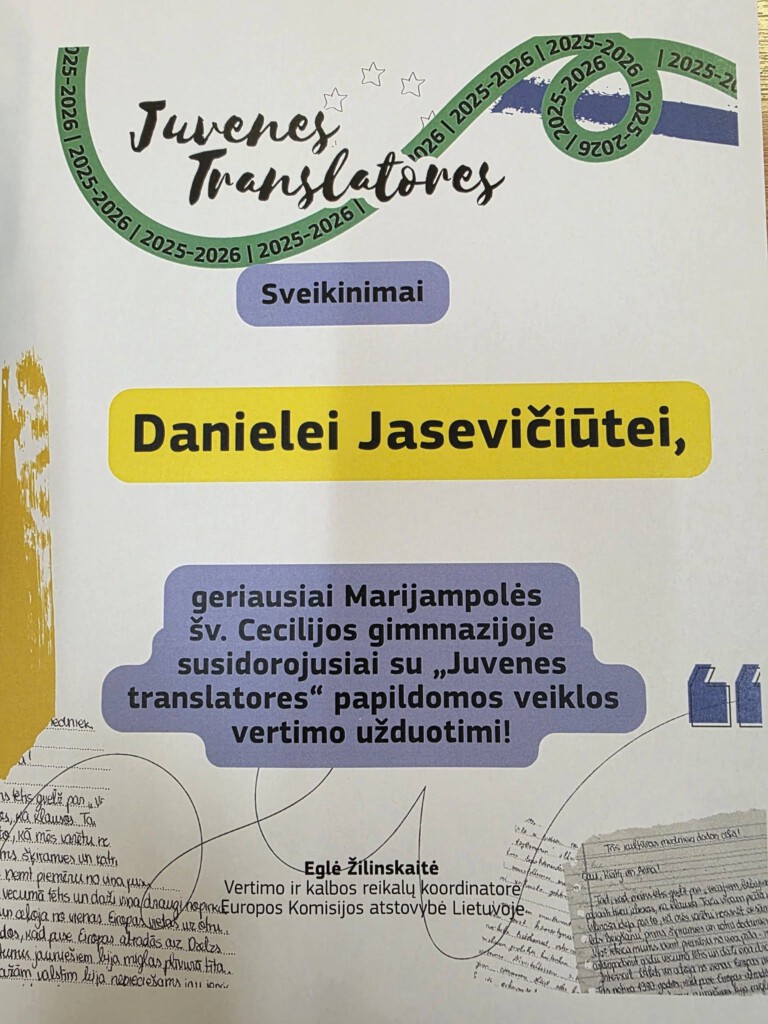 11 klasės mokiniai dalyvavo „Juvenes Translatores“ alternatyvioje veikloje, kur galėjo išbandyti savo vertimo gebėjimus.