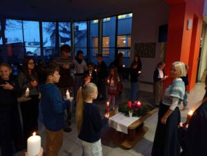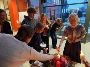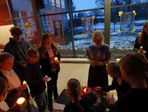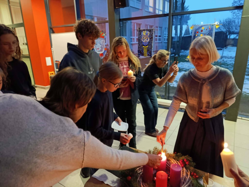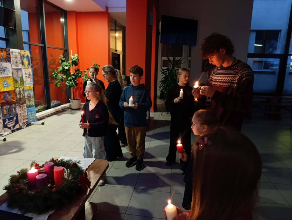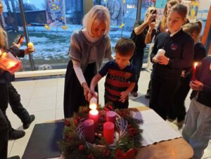 Šiandien, būdami kartu, prisiminėme Advento vainiko istoriją ir uždegėme mokyklos vainiko pirmąją Vilties žvakę. Nuo jos pasidalinome ugnies šviesa, parnešdami ramybės dalelę į savo klases.