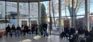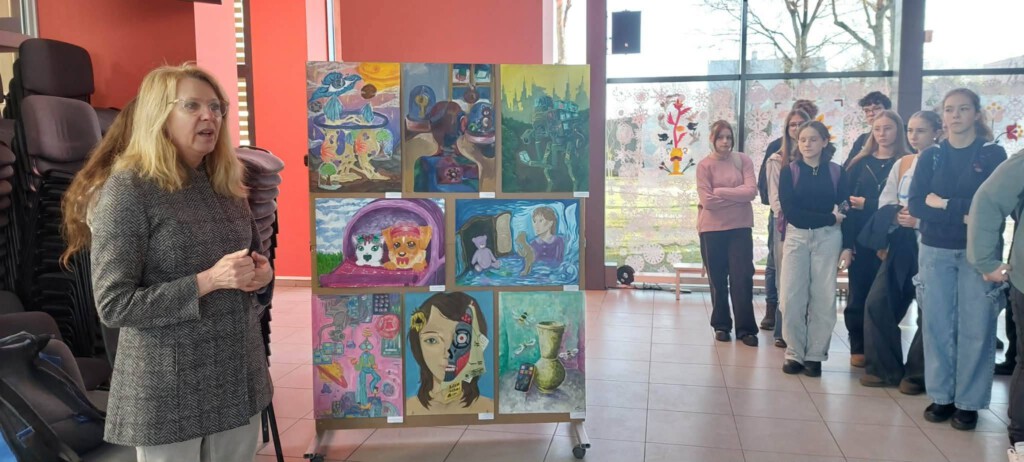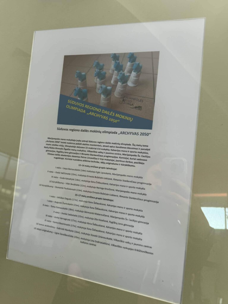 Šiandien mūsų gimnazijoje atidaryta Sūduvos regiono Dailės mokinių olimpiados „Archyvas 2050“ mokinių dailės darbų paroda. Jau antrą kartą Marijampolės meno mokykla organizavo dailės mokinių olimpiadą. Parodos atidaryme dalyvavo MMM Direktoriaus pavaduotoja dailės ugdymui Kristina Strolienė, kuri ir yra šios olimpiados organizatorė.