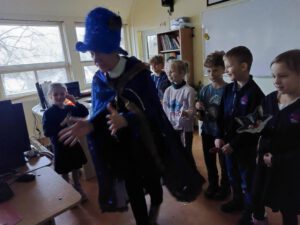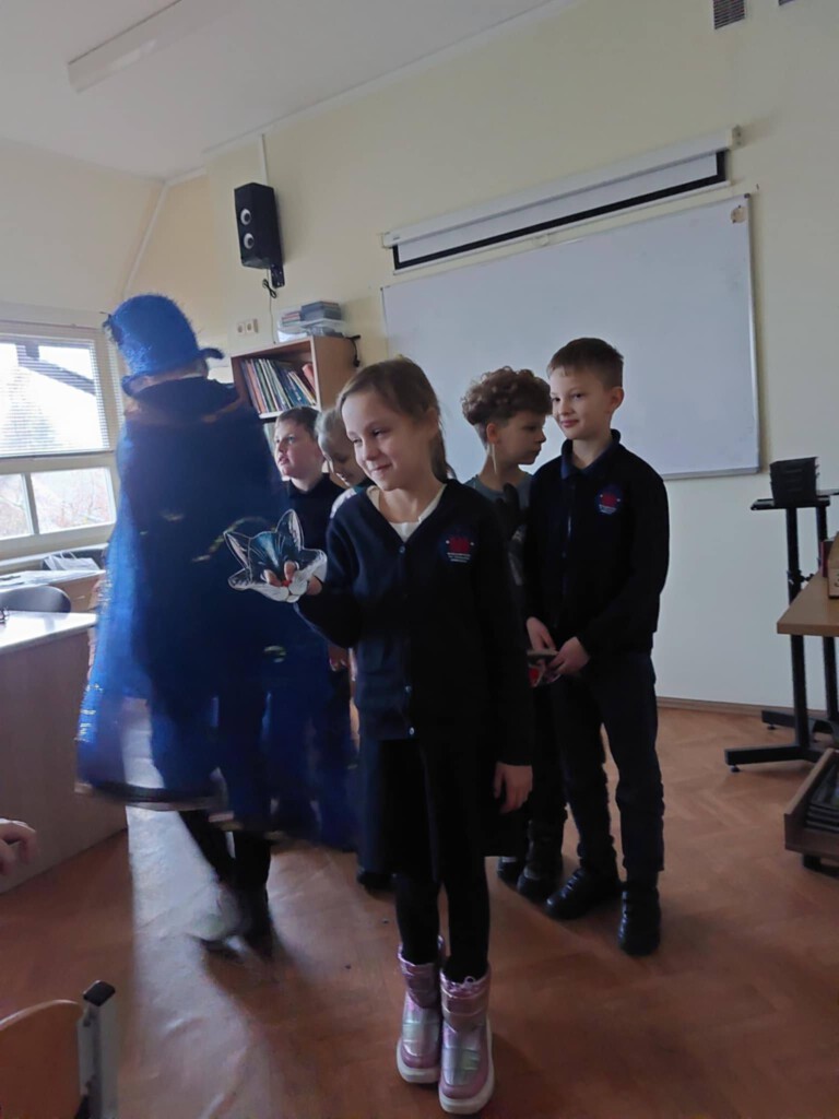 10 – ąją niūraus Advento dieną 2 b ir 1 a klasės mokinukams rašytoja Zita Gaižauskaitė praskaidrino mažu spektakliuku. Mažu spektakliuku virto susitikimas su poete, nes jis buvo toks šiltas, pilnas meilės, kūrybiškumo. Rašytoja deklamavo savo eilėraščius – galvosūkius, kurie ragino vaikus mąstyti, surasti teisingus atsakymus.
