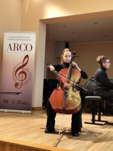 Š.m. gruodžio 3 dieną Kauno J.Naujalio gimnazijoje vykęs XXV Lietuvos muzikos ir meno mokyklų styginių instrumentų festivalis- konkursas ARCO pasižymėjo ypatingai gausiu dalyvių skaičiumi. Puikiai jame pasirodė ir Šv. Cecilijos gimnazijos violončelininkės A. Simanaitytė 2kl., N. Guzaitytė 4kl. ir L. Šlekytė 3 g. kl. Luknė apdovanota diplomu už išskirtinį sceninį įtaigumą. Nuoširdžiai dėkojame mokytojai I. Valiulienei, koncertmeisterei E. Radzevičiūtei už profesionalų darbą, mergaičių tėveliams už palaikymą.